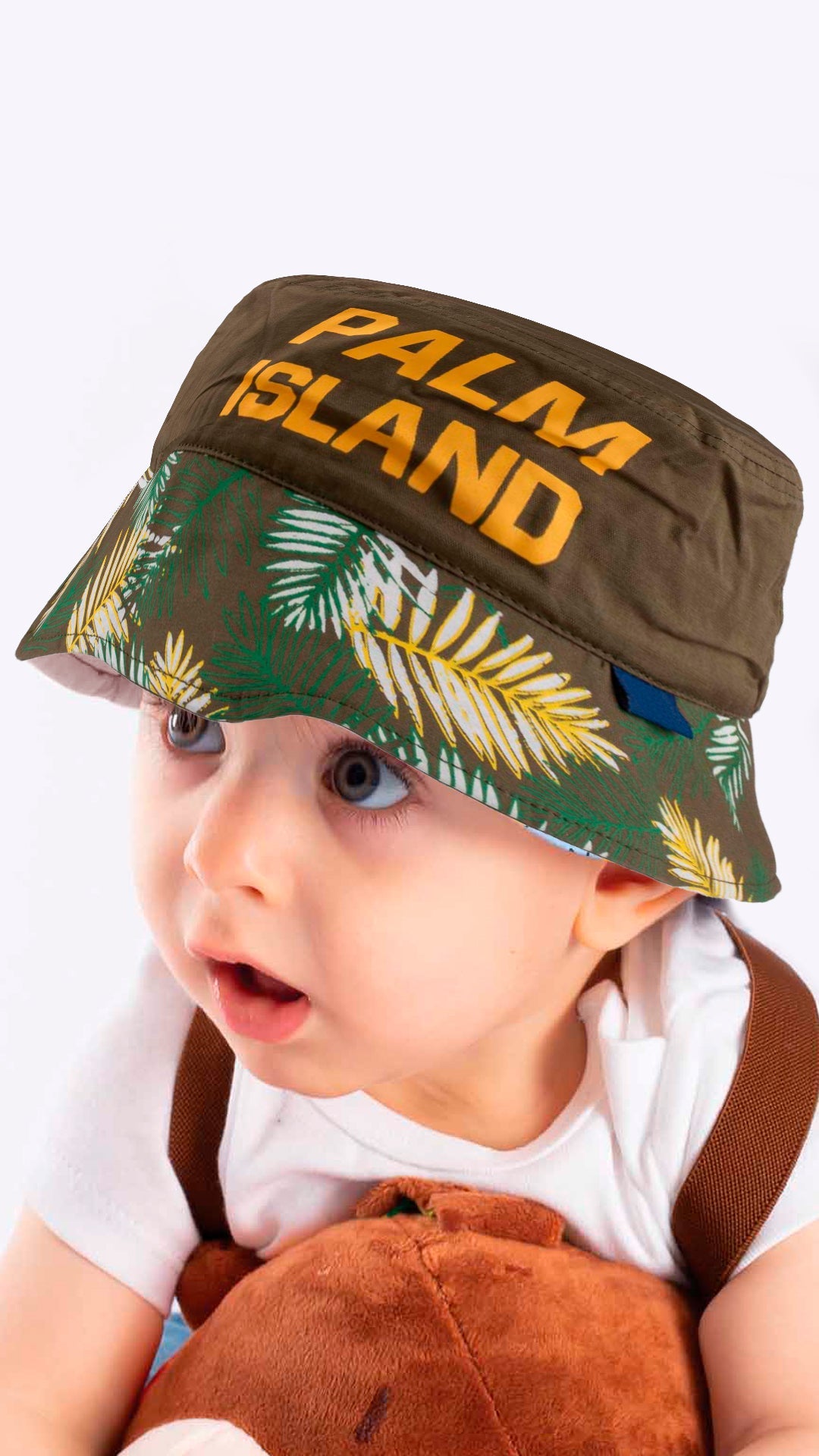 Sierra's fabulous "Palm Island" artwork sunhats will keep your delicate kiddies shaded and looking adorable outdoors. Great for photographs! Made from cotton and polyester for an easy and comfortable fit is perfect for beach days.